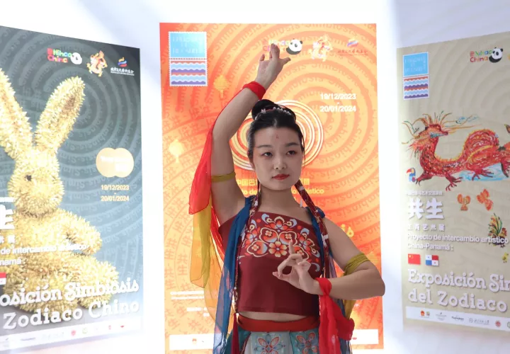 Se exhiben pinturas de la artista chino-panameña, Sally Huang, así como esculturas del artista chino Yong Zhang.