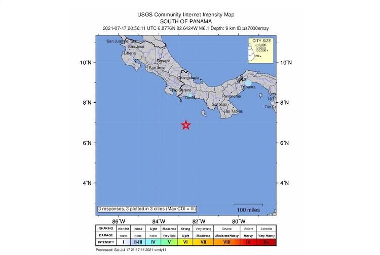 Por su parte, el Servicio Geológico de Estados Unidos (USGS, por sus siglas en inglés), registró el sismo con magnitud 6,1 con epicentro a 130 kilómetros al sur de Punta Burica, en el litoral Pacífico de Panamá.