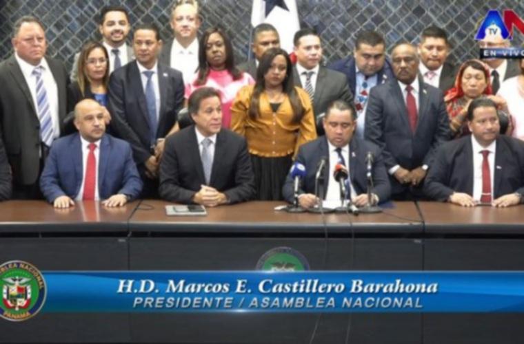 Luego, el presidente de la Asamblea junto a miembros del PRD, Molirena y CD convocó a una rueda de prensa anunciando que se plegaban al documento de la Concertación. Marcos Castillero no permitió preguntas.