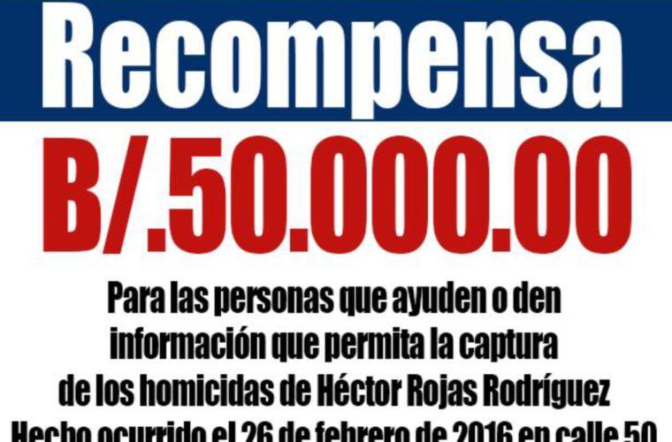 Una extraña recompensa ofreció ayer la Policía Nacional. La suma es de $50 mil para los que ayuden o den información que permita la captura de los homicidas del exconvicto por lavado de dinero Héctor Rojas Rodríguez, apodado “El Enano” y “Trueno Blanco”.