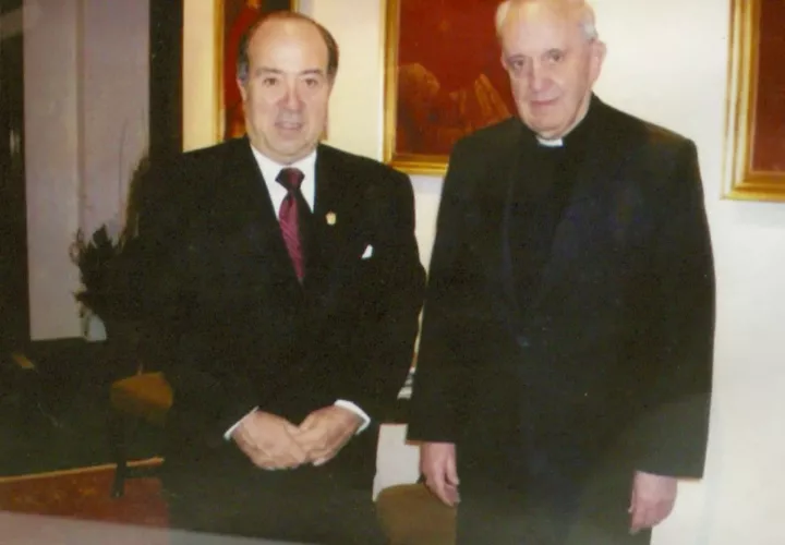Tiene un cuento simpatiquísimo, después que terminamos, yo le dije: su eminencia, ¿podría tomarme una foto con usted? y él me dijo: embajador, lastimosamente yo no tengo fotógrafo aquí.