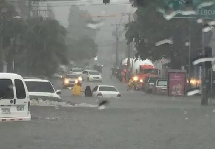 El Sistema Nacional de Protección Civil de Panamá (Sinaproc) colgó en su página oficial de Twitter fotografías en las que se puede ver que el nivel de agua acumulada alcanza el medio metro en varios puntos de la capital y en las que hay varios vehículos semi flotando en medio de la calle.