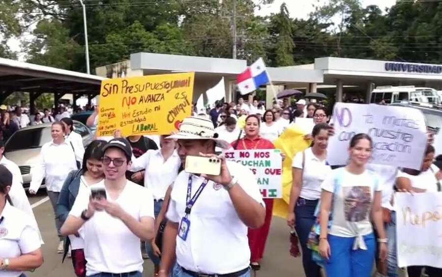 ¡Exigen más presupuesto! Un grupo de estudiantes, personal administrativo y docentes de la Universidad Autónoma de Chiriquí, ubicada en la vía Panamericana de David, llevó a cabo este lunes una protesta pacífica en respuesta al bajo presupuesto asignado para 2025 por el Ministerio de Economía y Finanzas (MEF).