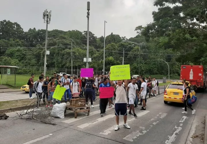 Un grupo de estudiantes de la Universidad de Panamá cerraron la vía Albrook, frente al Domo universitario, exigiendo mantenamiento a las instalaciones y reclamos de supuestas notas injustas.