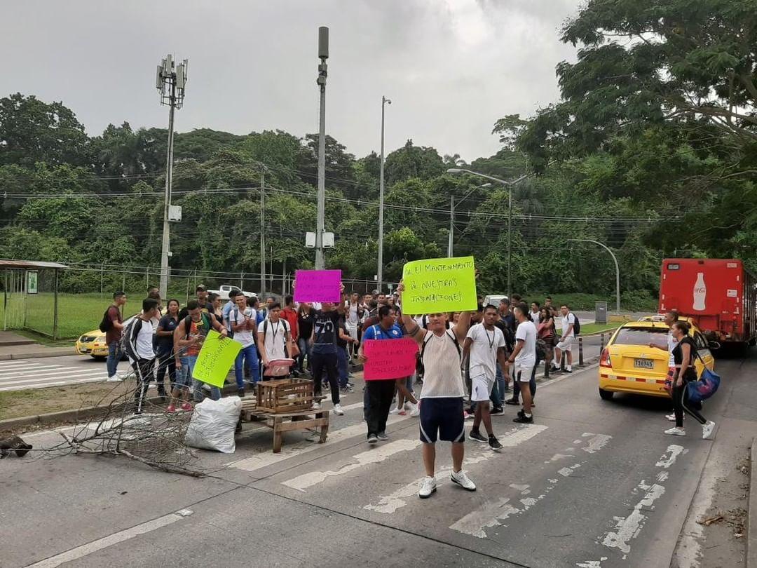 Un grupo de estudiantes de la Universidad de Panamá cerraron la vía Albrook, frente al Domo universitario, exigiendo mantenamiento a las instalaciones y reclamos de supuestas notas injustas.