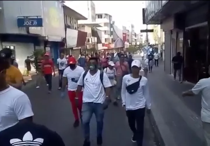 Un grupo de buhoneros, barberos y trabajadores informales marchan hoy, lunes, hacia la Presidencia de la República, ubicada en San Felipe.