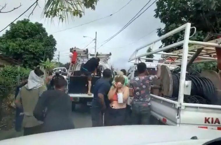 En un video se muestra cómo las personas lanzan piedras al personal de la empresa de distribución de luz, y otros vandalizan las herramientas de trabajo, incluyendo los vehículos.