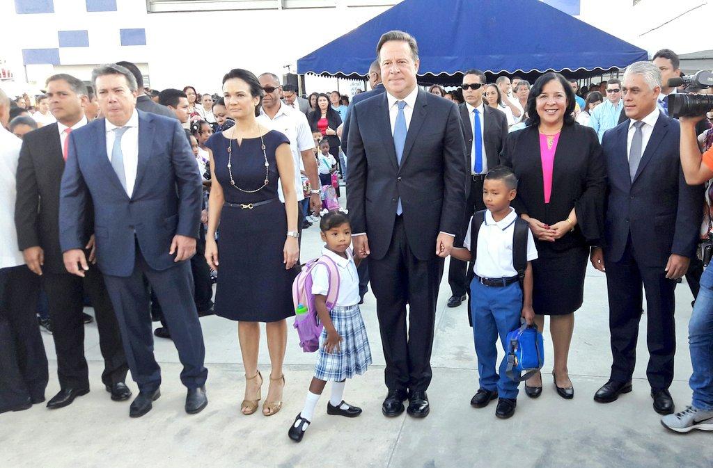 El Mandatario estuvo acompañado por la vicepresidenta y canciller, Isabel Saint Malo de Alvarado y otros ministros de Estado en la apertura de este nuevo centro educativo con motivo del año escolar 2018.