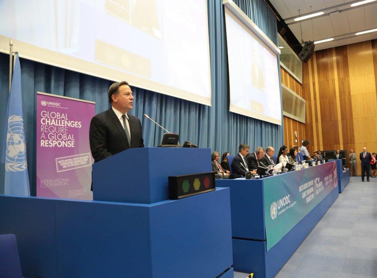 "Quiero compartirles mi profunda preocupación por el aumento exponencial de los cultivos de coca y la incursión de nuevas drogas sintéticas que están causando la muerte de miles de jóvenes en algunos países", declaró Varela en el plenario de la novena sesión de la Convención de las Naciones Unidas contra la Delincuencia Organizada Transnacional (UNTOC).