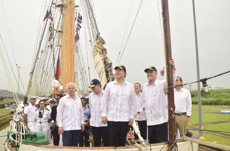 Posteriormente, ambos mandatarios realizaron una travesía por el Canal de Panamá a bordo del Buque Escuela Esmeralda, de Chile.