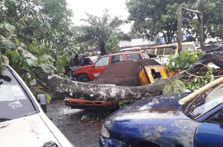 Otro punto afectado por los fuertes vientos fue Punta Barco, donde también se registró la caída de árboles.