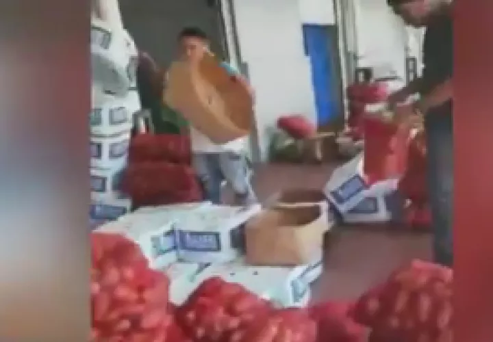 En el video capta a los trabajadores desempacando unas cajetas del producto importado y reempacado en sacos nacionales.
