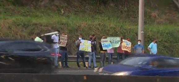 Panamá-   Un grupo de desempleados protestaron hoy, martes, a orillas de la vía Interamericana, cerca del puente de Las Américas, para exigir plazas de trabajo en la construcción de la Línea 3 del Metro de Panamá.