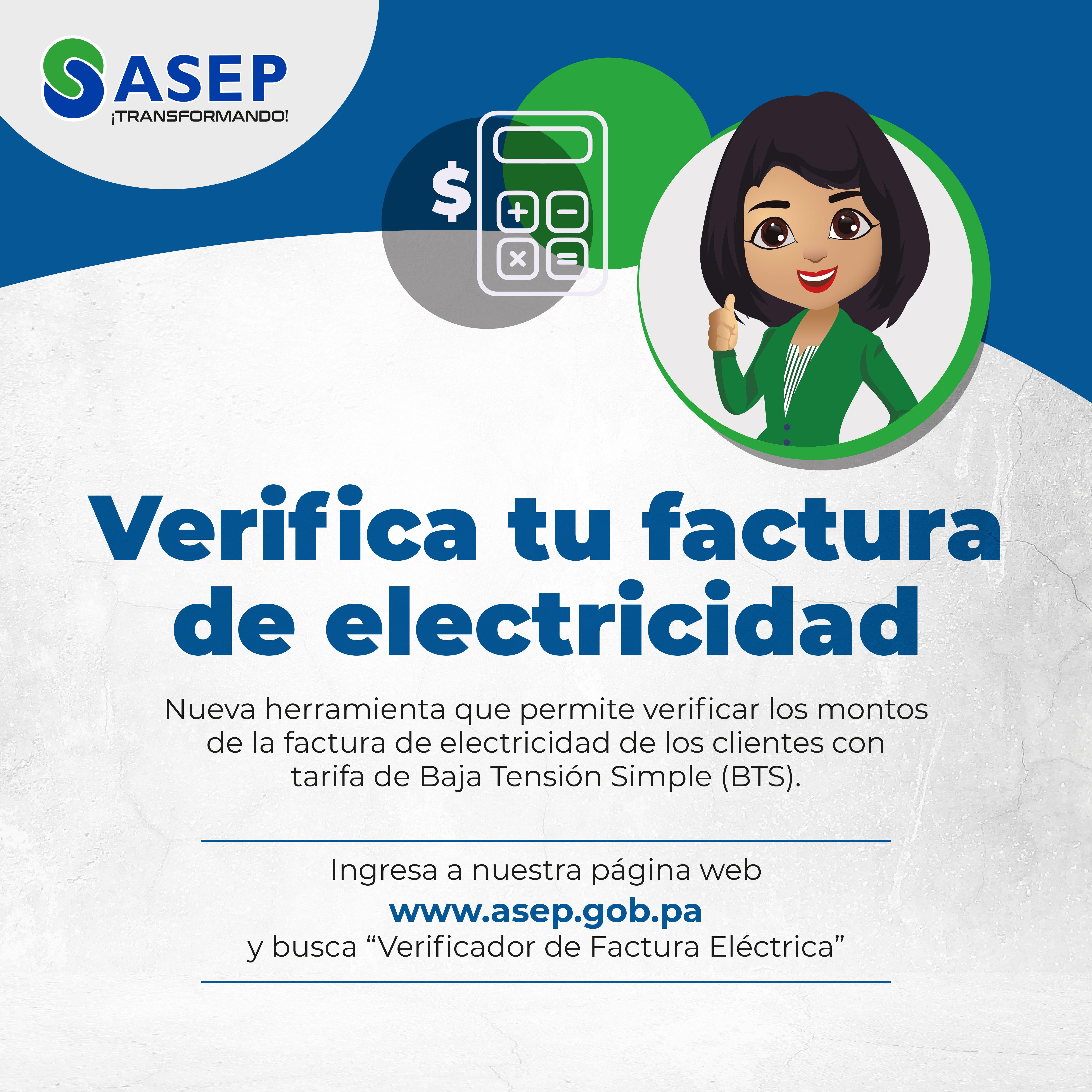 Esta plataforma, accesible desde el enlace oficial asep.gob.pa/verificador-de-factura-electrica, permitirá a los clientes con tarifa de Baja Tensión Simple (BTS) verificar los montos de sus facturas de electricidad de manera rápida y sencilla.