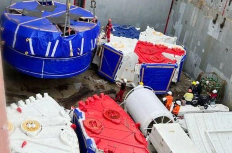 Viene bajando la tuneladora para la Línea 3 del Metro