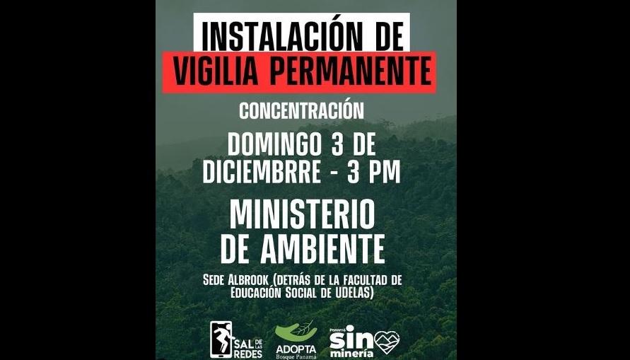 Según la publicación, se instalará una vigilia permanente en las instalaciones del Ministerio de Ambiente, con inicio hoy a las 3 p.m., con el propósito de exigir la paralización de toda actividad minera.