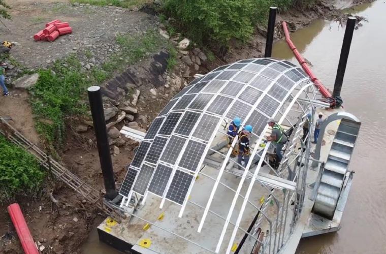 El sistema consiste en una barrera flotante que retendrá los desechos, haciendo que floten hasta la recolectora de WANDA DÍAZ, que a su vez usará energía hidráulica y paneles solares para removerlos.