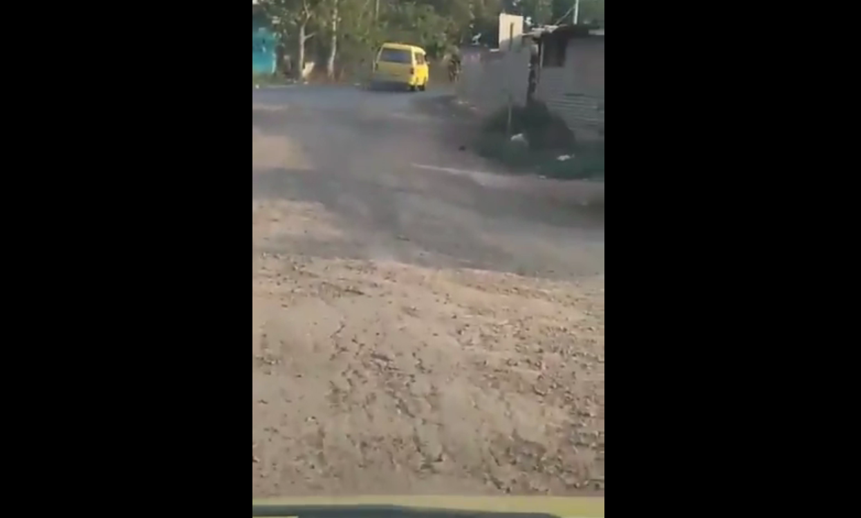 A través de un video, un conductor, mientras filma, explica que la calle por la cual circula está llena de huecos y hondonadas, además de se aprecia que no está asfaltada.
