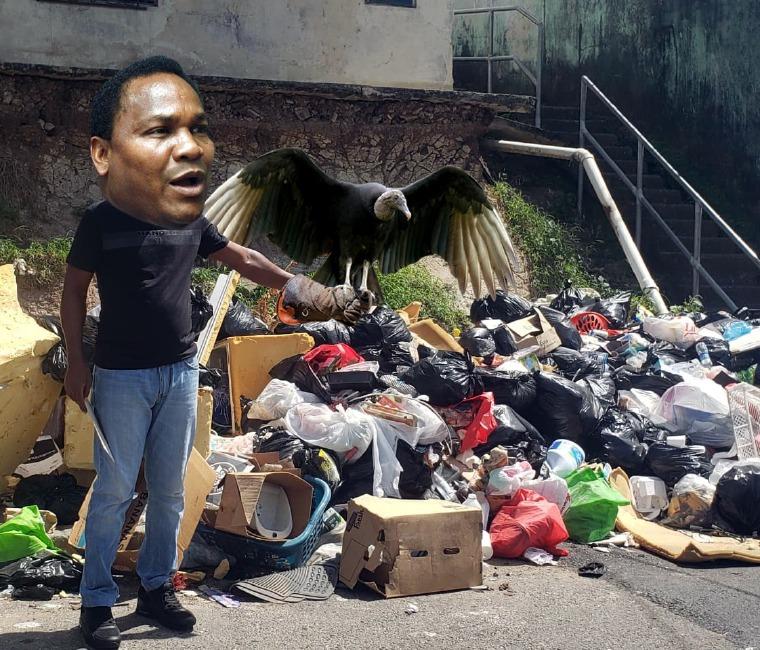 Las ratas y los gallotes se pelean los desperdicios. La población aprovecha la mascarilla anti Covid-19 para disminuir inhalar la pestilencia del patacón.