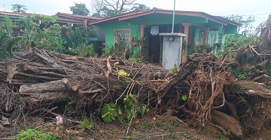 Aunque cuadrillas cortaron las ramas más expuestas, la estructura principal del árbol permanece sobre la servidumbre, sin que se haya completado su remoción.