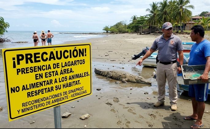 Autoridades alertan sobre presencia de lagartos en playa Torio