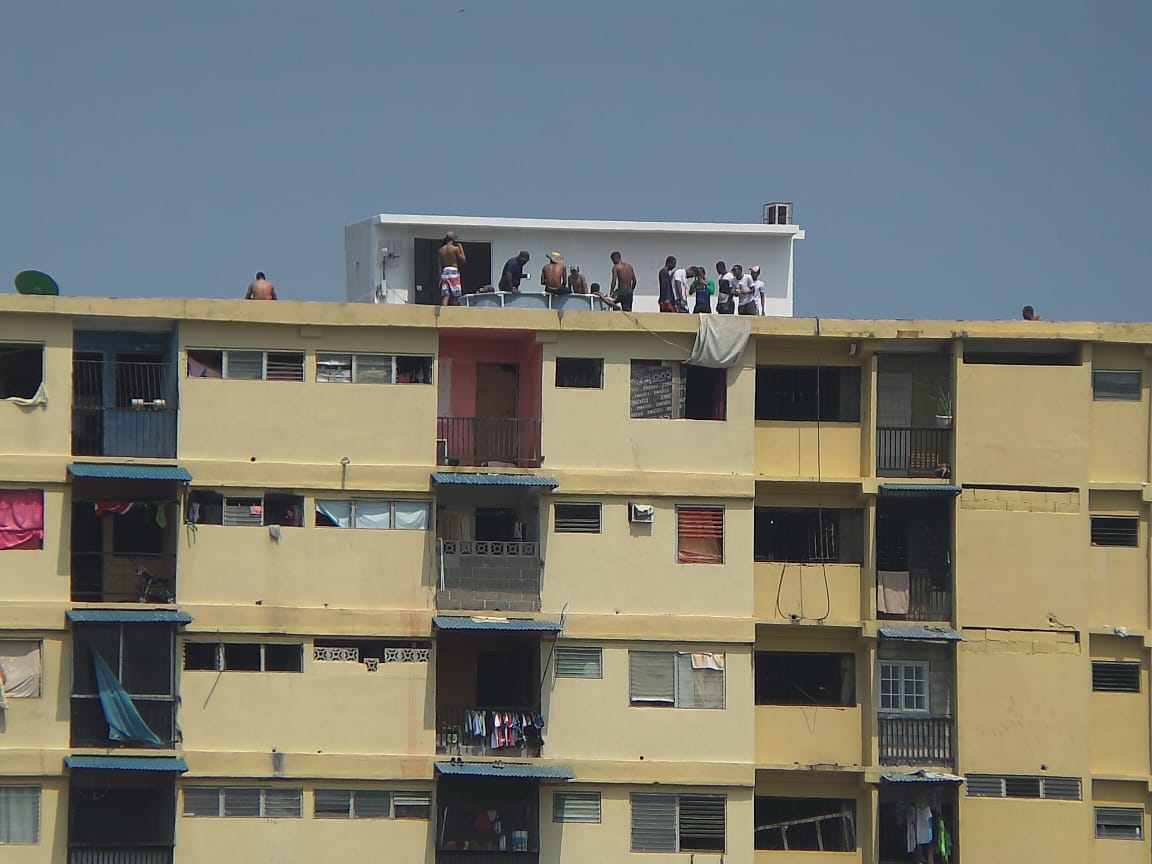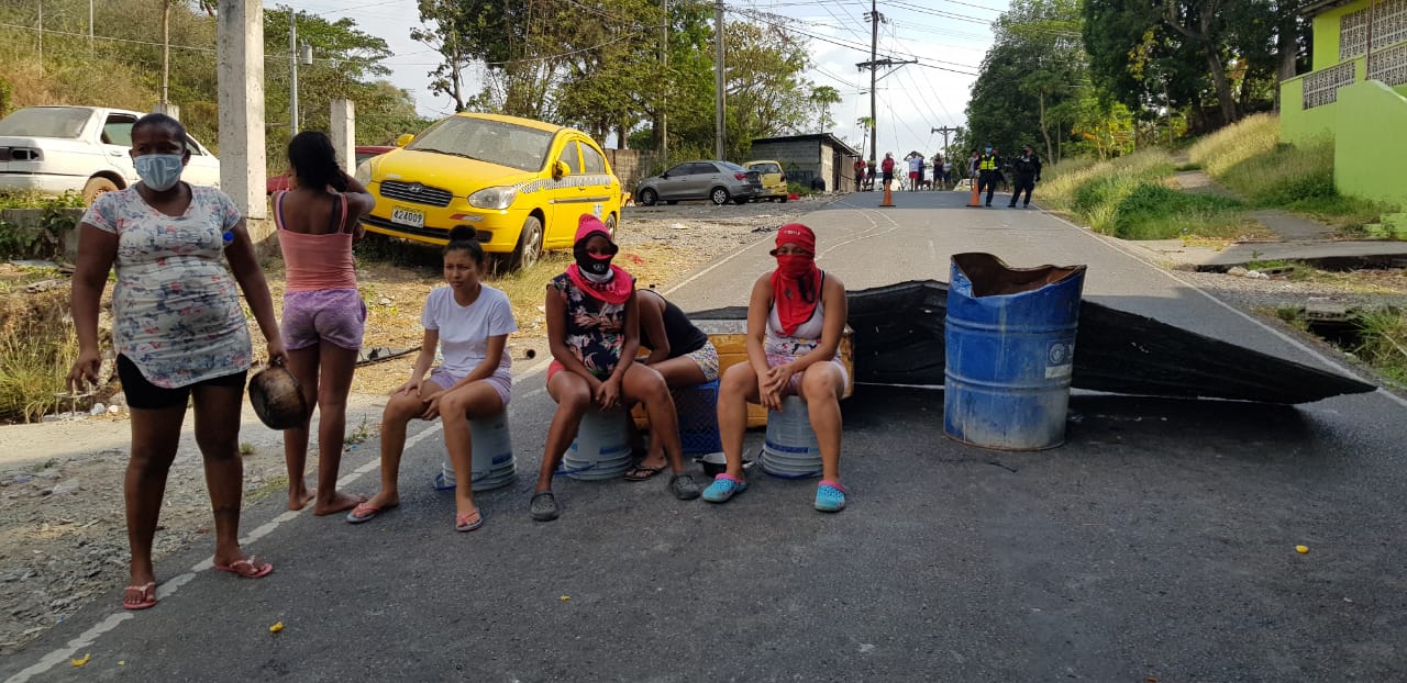 La protesta se inició a eso del mediodía, cuando un grupo de damas colocó pedazos de zinc y basureros en una de las calles del sector para impedir el paso de los vehículos.