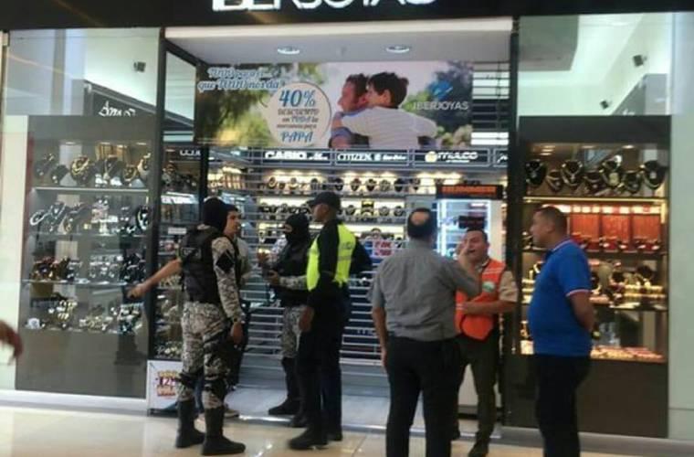 Un intento de asalto en la sucursal de la Joyería Iberjoyas, en Metromall, fue frustrado por un agente de seguridad que resultó herido de bala, pero que alcanzó a herir a uno de los cuatro protagonistas, de los cuales tres fueron capturados.