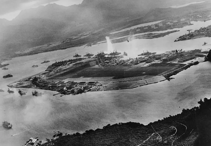 El 7 de diciembre de 1941 en Hawái, la Marina Imperial Japonesa lanza su ataque a Pearl Harbor. El ataque a Pearl Harbor fue una ofensiva militar sorpresa contra la base naval de los Estados Unidos en la mañana del domingo 7. El ataque pretendía ser una acción preventiva destinada a evitar la intervención de la Flota del Pacífico de los Estados Unidos en las acciones militares que el Imperio del Japón estaba planeando realizar en el Sureste Asiático contra las posesiones ultramarinas del Reino Unido, Francia, Países Bajos y Estados Unidos.