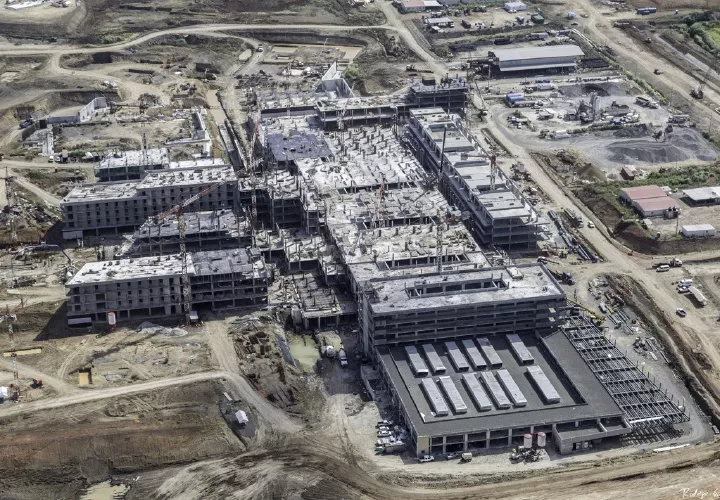 La ciudad hospitalaria registra un avance de 52% en su construcción por parte de los representantes del Consorcio Construcciones Hospitalarias, S. A., responsable de la obra.