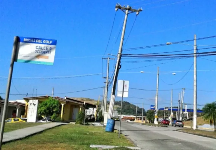 Denuncian que en calle 9.ª Occidente en Brisas del Golf, San Miguelito, hay un poste de tendido eléctrico en la vía principal con inclinación irregular. Solicitan a las autoridades encargadas de su mantenimiento que pronto lo arreglen antes de que ocurra un accidente.