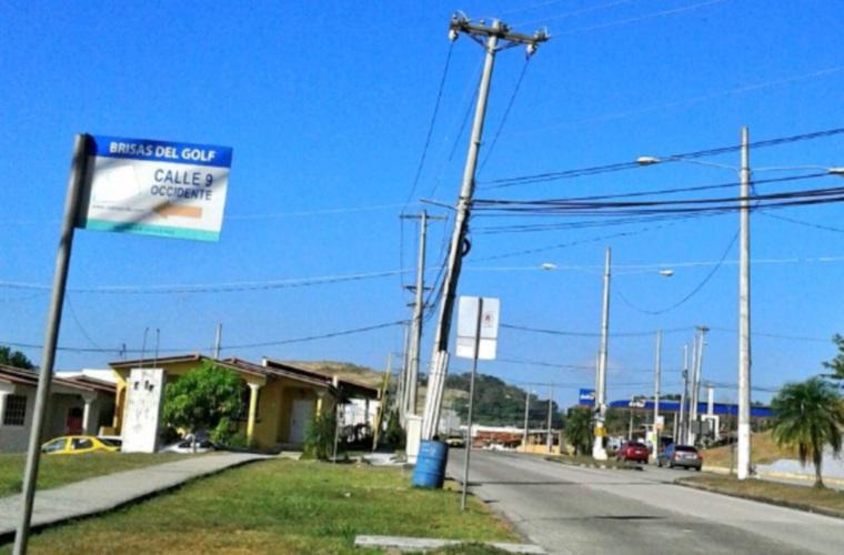 Denuncian que en calle 9.ª Occidente en Brisas del Golf, San Miguelito, hay un poste de tendido eléctrico en la vía principal con inclinación irregular. Solicitan a las autoridades encargadas de su mantenimiento que pronto lo arreglen antes de que ocurra un accidente.