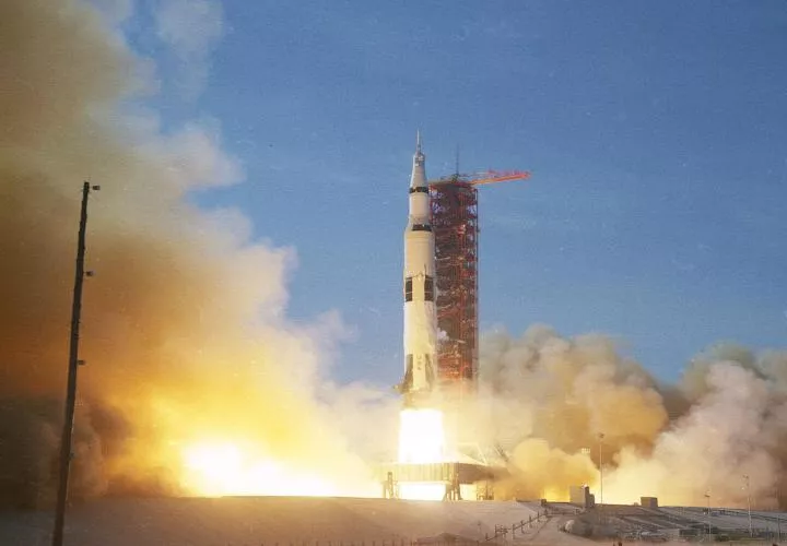 A las 9:32 hora local del 16 de julio de 1969, despega del complejo espacial de la Nasa de Cabo Kennedy, en Florida (Estados Unidos), el Apolo 11, impulsado por un potente cohete Saturno V, cuya misión es poner un hombre en la superficie de la Luna. La tripulación está compuesta por el comandante Neil A. Armstrong, de 38 años y comandante de la misión; Edwin E. Aldrin Jr., de 39 años y piloto del LEM (módulo lunar), y Michael Collins, de 38 años y piloto del módulo de mando. La misión tiene éxito el 20 de julio, cuando Armstrong pone pie en la Luna.