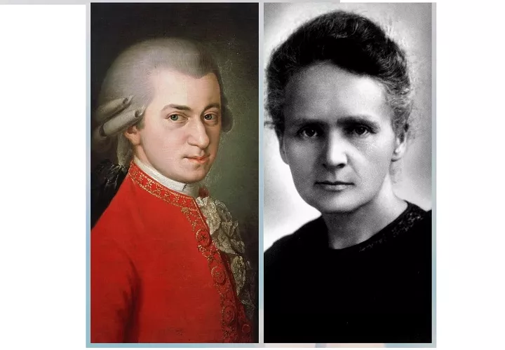 Tendemos a partir de la premisa de que aquél quién sobresale en matemáticas posee una inteligencia superior a aquellos que sobresalen en otros aspectos, pues quiero comentarles que la inteligencia abarca distintos ámbitos: artísticos, deportivos entre otros; dicho esto les pregunto: ¿Cuál estas dos notables personalidades fue más inteligente: Marie Curie o Wolfgang Amadeus Mozart?