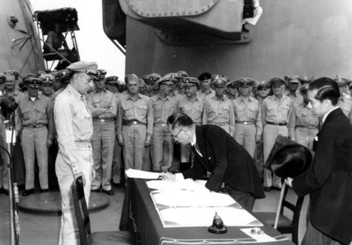 El 14 de agosto de 1945, el imperio japonés se rinde a los aliados, después de ocho días trascendentales en los que se han lanzado dos bombas atómicas norteamericanas sobre territorio nipón. Al día siguiente, 15 de agosto, los ciudadanos japoneses podrán escuchar la voz de su Emperador, Hirohito, comunicándoles la aceptación de las condiciones acordadas en la Conferencia de Postdam para la Rendición de Japón. La II Guerra Mundial habrá terminado en todos sus frentes.