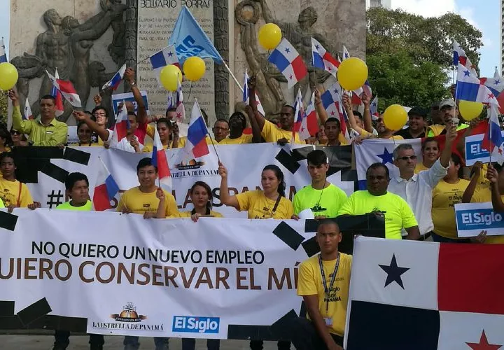 Empleados del grupo Gese (La Estrella/El Siglo), periodistas y líderes de gremios y sindicatos del país participaron ayer en una marcha desde la plaza Porras hasta la Presidencia de la República.