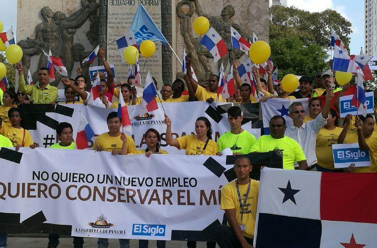 Empleados del grupo Gese (La Estrella/El Siglo), periodistas y líderes de gremios y sindicatos del país participaron ayer en una marcha desde la plaza Porras hasta la Presidencia de la República.