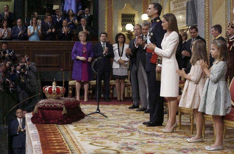 El 19 de junio de 2014, en Madrid, España, y tras haber anunciado el pasado día 2 el rey Juan Carlos su intención de abdicar a favor de su hijo, el príncipe Felipe, tiene lugar, en un acto solemne que se celebra en el salón de plenos del Congreso de los Diputados, la proclamación como rey de su hijo, que reinará como Felipe VI.