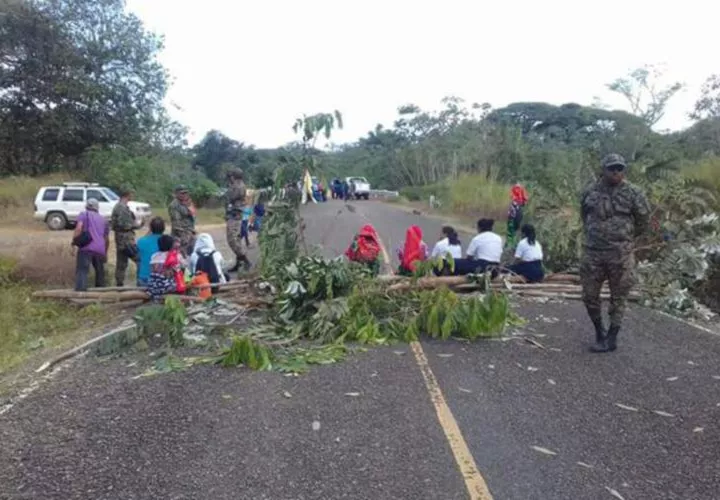 Las personas estaban paradas o acostadas a través de la vía, y exigieron en el sitio la presencia de la ministra de Educación, Marcela Paredes, y de los caciques gunas.