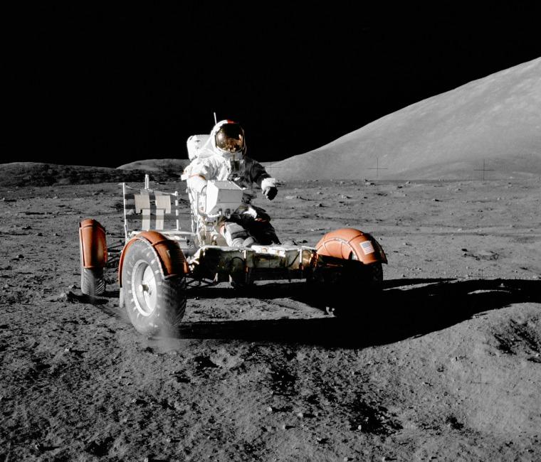 Por primera vez en la historia, un 31 de julio del año 1971 se utiliza un vehículo de cuatro ruedas para transportar personas fuera de la Tierra, al usar los astronautas del Apolo XV, James B. Irwin y David Scott, el "rover lunar" alimentado por baterías, para explorar la superficie de la Luna, en las inmediaciones de su lugar de alunizaje. Esta primera exploración tiene una duración de 6 horas y 32 minutos que sirve para investigar el borde de la grieta Hadley, instalando una estación científica, llamada ALSEP, para estudiar el suelo y registrar la temperatura, el flujo de calor y la conductividad térmica, en la falda de los Apeninos lunares.