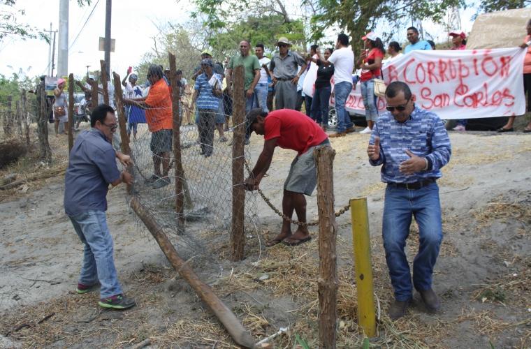 Previo a esta acción, el grupo de sancarleños había realizado un piqueteo ante la Alcaldía de este distrito, exigiendo a las autoridades municipales ordenar el retiro de la cerca.