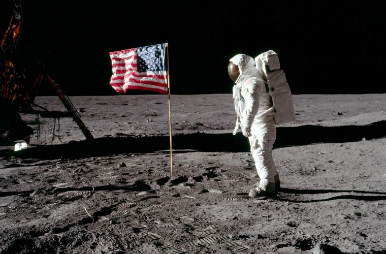 El 20 de julio de 1969, tras 4 días de viaje a bordo de la cápsula Apollo 11, el astronauta estadounidense Neil Armstrong se convierte en el primer hombre en pisar la Luna. La misión histórica la completaron Edwin "Buzz" Aldrin y Michael Collins. Al bajar por la escalera, Armstrong dijo las históricas palabras: "Este es un pequeño paso para el hombre; un gran salto para la humanidad".