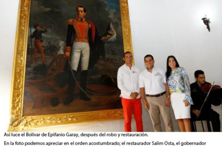 Este óleo de referencia del Bolívar de Epifanio Garay es una creación que tiene mucha importancia desde varios puntos de vista. “Una de ellas es que es un patrimonio simbólico muy fuerte porque es una imagen comisionada por Rafael Núñez a Epifanio Garay cuando vino a Cartagena en un momento muy especial, para la apertura de la Escuela de Bellas Artes, que resumía el espíritu de la enseñanza de las artes a finales del siglo XIX. Garay venía a dirigir la Escuela de Pintura”, sostiene Eduardo Hernández, director del programa de Artes Plásticas en la Institución Universitaria de Bellas Artes y Ciencias de Bolívar, y curador del Museo de Arte Moderno de Cartagena. “Sin duda, esto era un indicador de progreso en una ciudad que estaba entrando en la nueva República de Colombia”, asegura Hernández.