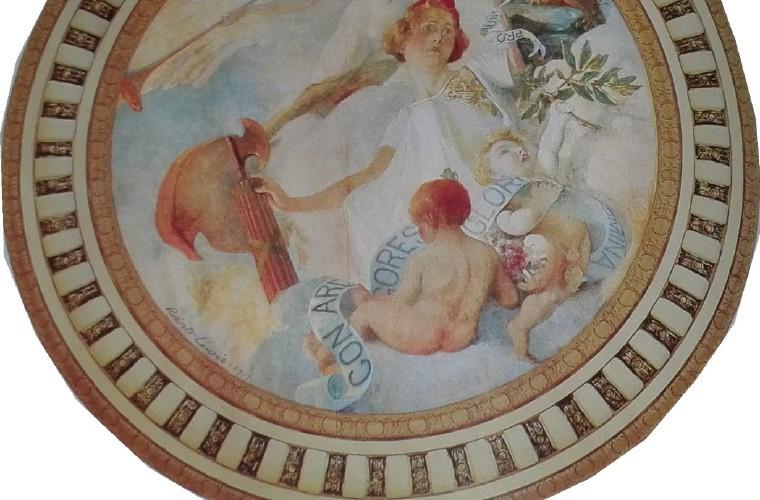Sigue una figura de mujer que, haciendo alarde del más puro clasicismo, se levanta gallardamente, de espaldas al observador, sobre un pedazo de fondo claro. Tropezamos en el camino con una banda de amorcillos que, como en coro de alados copos de nieves sonrojada por la Aurora, cruza en un bullicioso trinar de alegres golondrinas. Nos encontramos con la Fama, que tendida sus alas azules, levanta al cielo sus trompetas de oro anunciando que ha llegado la hora de la redención. Entre el Sol, que nace, y la Noche, que huye, la Fama es un gran estudio de luz, donde el talento de Lewis ha hecho de sus vastos y sólidos conocimientos de la estructura humana.