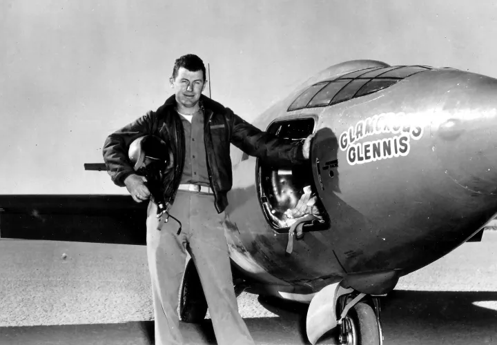 Por primera vez en la historia, el hombre rompe la barrera del sonido. El 14 de octubre de 1947, Chuck E. Yeager, piloto estadounidense, a los mandos del avión cohete Bell "X-1", sobrepasa los 1,224 km/hora volando a 13 mil metros de altura por encima del lago seco Rogers (California, EE.UU.). El Bell X-1 es una aeronave experimental impulsada por un motor de cohete lanzada desde el vientre de un bombardero B-29 modificado.