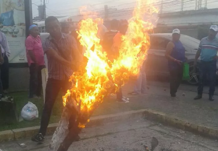 Durante la protesta se les tiró candela a dos muñecos que simbolizaban a los “caballos de Troya” y que tenían las fotos de los traidores. “¡Abajo los caballos de Troya… y si no se van, los echamos!”, eran las exclamaciones que se escuchaban.