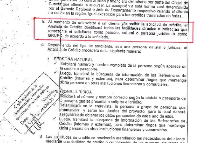 “Es importante indicar que todo lo requerido en la práctica para la aprobación de las facilidades de crédito fue obtenido [por los miembros de la Caja de Ahorros a cargo del préstamo de HPC Contratas P&V]”. (f. 963)