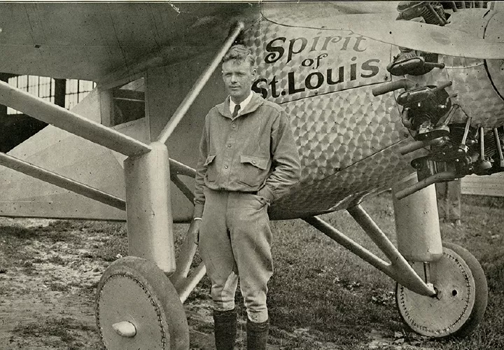 El 20 de mayo de 1927, despega de Long Island (Nueva York, EE.UU.) la aeronave Espíritu de San Luis, pilotada por el americano Charles Lindbergh. 33 horas y media después y tras recorrer 5,800 kilómetros, aterrizará en París, y se convierte en el primer hombre que realiza un vuelo trasatlántico sin escalas.
