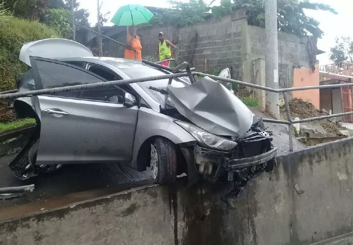 El conductor de un vehículo marca Hyundai Elantra salió ileso, luego de chocar y quedar sobre una acera elevada en el sector de Cabuya, del corregimiento de Tocumen.