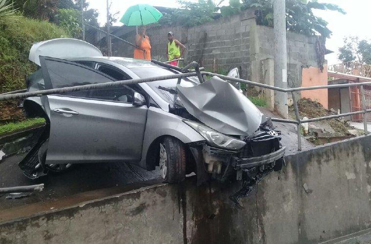 El conductor de un vehículo marca Hyundai Elantra salió ileso, luego de chocar y quedar sobre una acera elevada en el sector de Cabuya, del corregimiento de Tocumen.