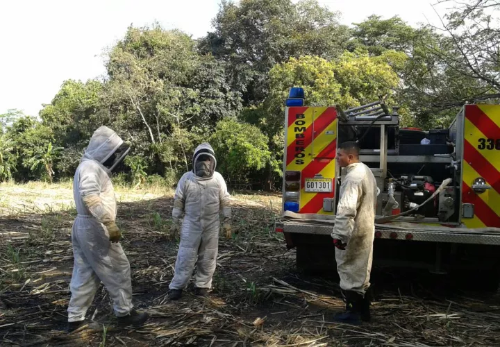 Al sitio se presentó personal de operaciones del Cuerpo de Bomberos de Panamá (BCBRP) en Veraguas, quienes acudieron a ejecutar las labores de control de las abejas que no pudo hacerse debido a que el enjambre estaba disperso alrededor de un enorme árbol.